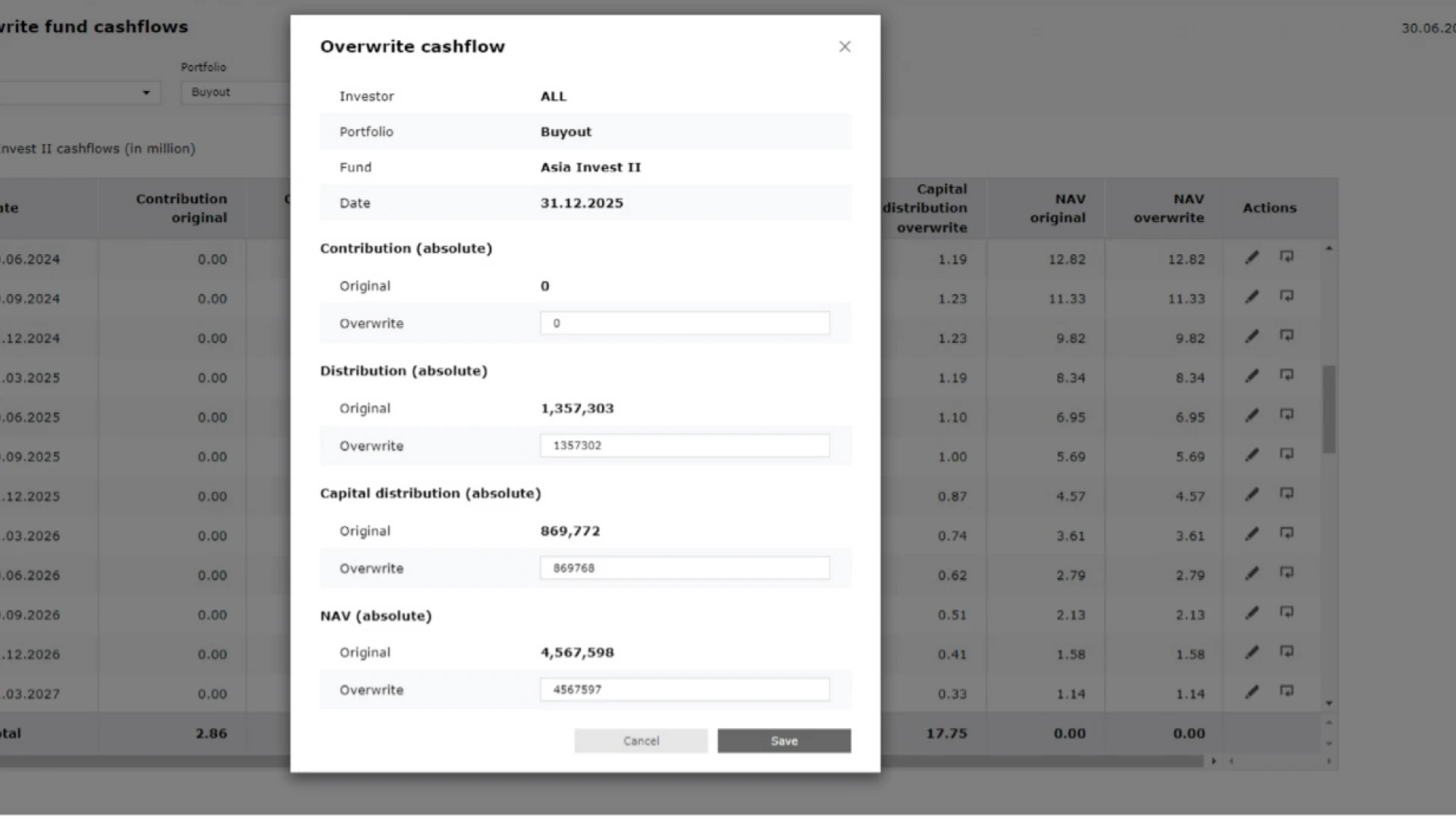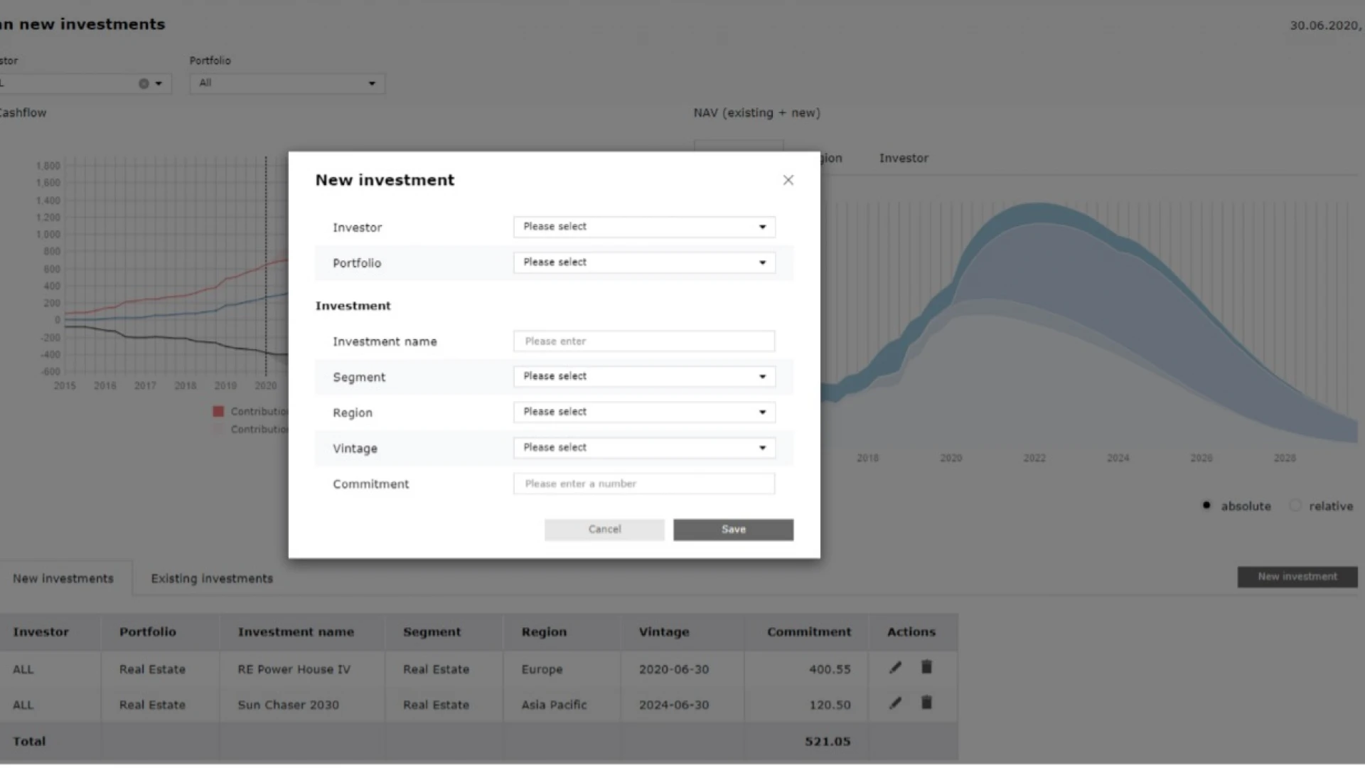 Seamless Integration of Portfolio Data: Our software seamlessly integrates the complete cash flow and Net Asset Value (NAV) history of your existing Private Equity portfolios.